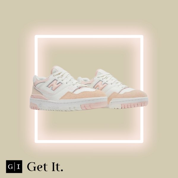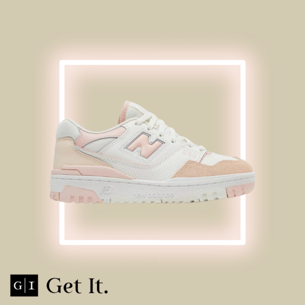 The New Balance women’s 550 ‘White Pink’ showcases pastel accents on the 1989 hoops shoe designed by Steven Smith. The low-top dons a white leather upper with a pink ‘N’ logo on the quarter panel. The delicate hue is repeated on the collar and moulded heel clip, while soft peach colouring lands on the forefoot and heel overlays in suede and leather. A traditional rubber cupsole features stitched sidewall construction and a foam wedge for lightweight cushioning.