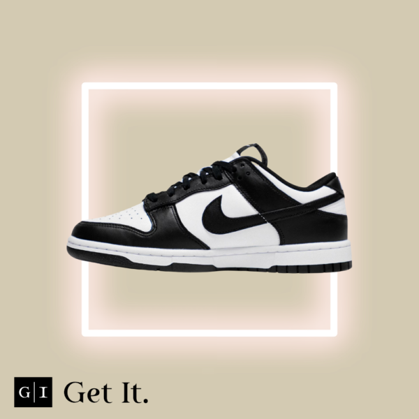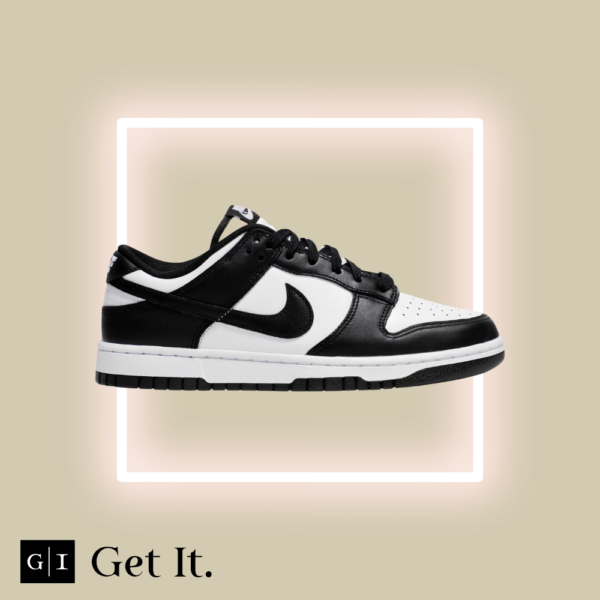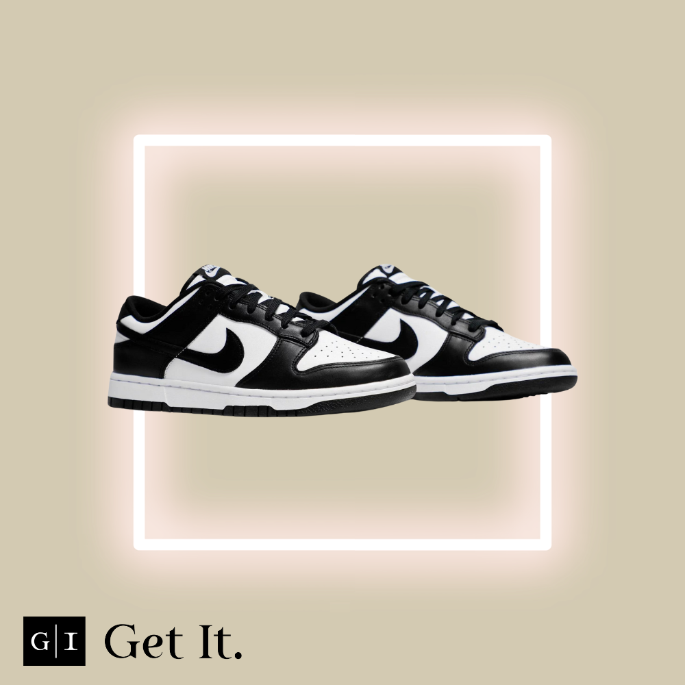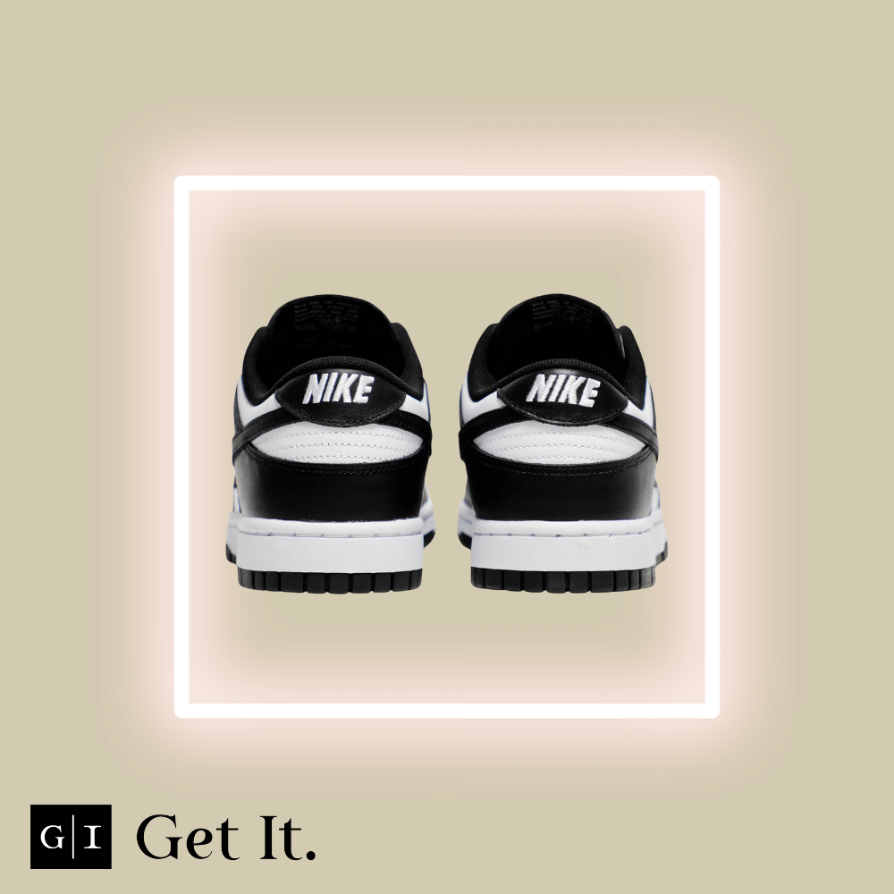 The Nike Dunk Low ‘Black White’ also known as ‘Panda’ treats the retro model to an essential two-tone color scheme that accentuates the sneaker’s clean lines, developed by designer Peter Moore and responsible for the shoe’s easy transition from the hardwood to the street. The leather upper combines a white base with contrasting black overlays that wrap around the toe and heel. On both the woven tongue tag and heel tab, Nike branding in white stands out in relief against a black backdrop.
